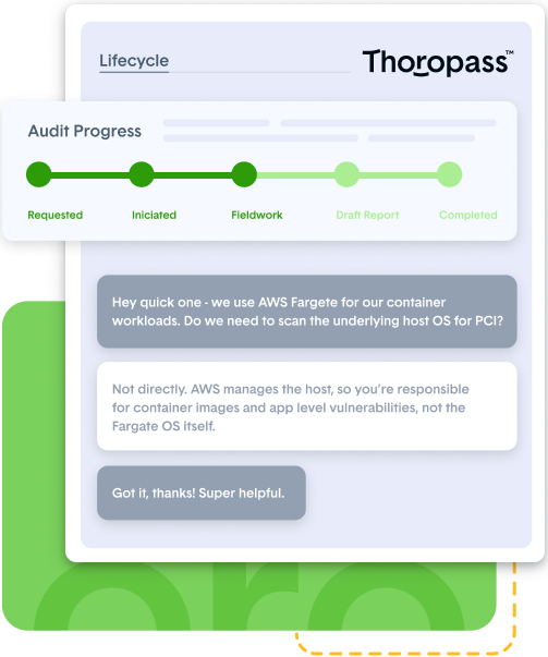 Thoropass combines compliance automation with a tech-enabled audit firm. Let’s connect to see how Thoropass can help streamline compliance, accelerate your audits, and reduce risk.